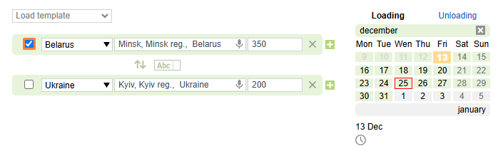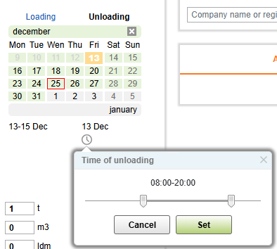 2. Date of loading/unloading. Date of loading/unloading date can be indicated 4 weeks in advance; offer validity period cannot be more than 3 business days (excluding weekends).
