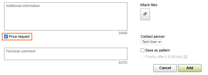 Price request. Tick this box to request carrier prices if there is no load available at the moment.
