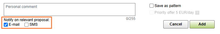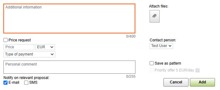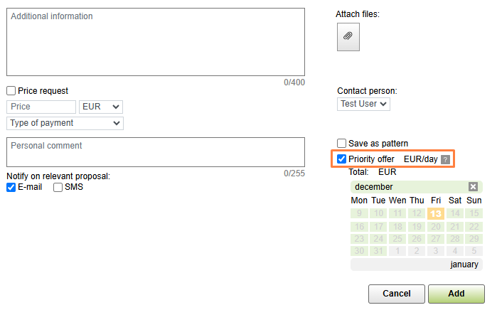 7. Priority offer. To have your offer displayed at the top of the table for the whole period of its relevance and highlight it for other users, select Priority offer. This is a paid service.