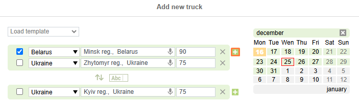 If you have a consolidated load, add an additional loading/unloading point by clicking on icon Add.