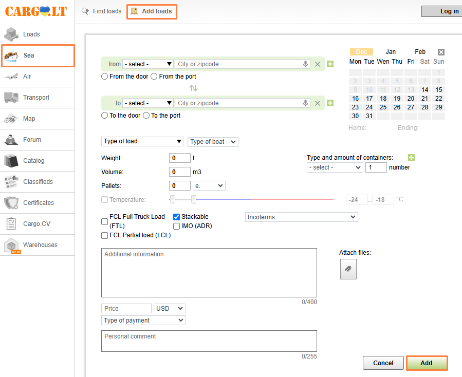If you have a load to transport, but you do not work for a company, i.e. you are a private person, start putting in your load,