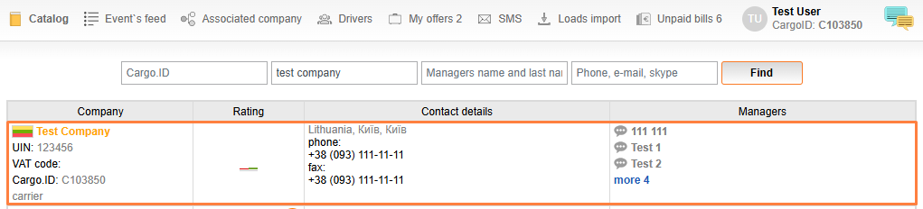 10.1. How to find a company in the catalog?