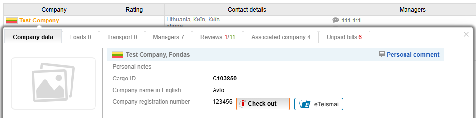 For companies from Latvia, Lithuania, Belarus, Ukraine and Kazakhstan, there is a Check out button near the unique company code in the Company Data section. By pressing it you will get full information about the company using YouControl (Ukraine), Creditinfo (Lithuania), Firmas.lv (Latvia), and LEGAT.BY (Kazakhstan, Belarus) services.