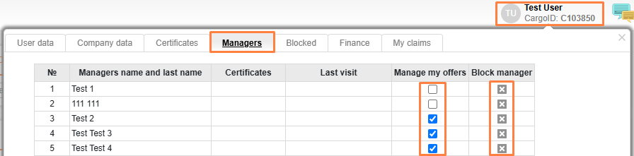 Other company managers will be able to manage your offers (suspend or delete them) if you tick them in the Managers section of your profile.