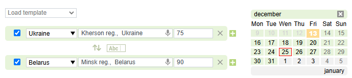 Tick the country. If you specified the search radius, you can also tick the country to the left of the loading or unloading point.