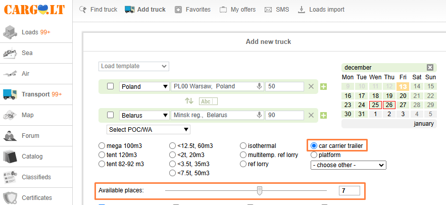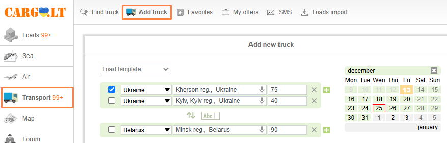 5.2. Adding truck offers through the Add Truck form