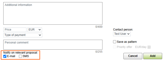 5. Notify on relevant proposal. If you wish to receive a notification of a suitable offer, select the notification means – e-mail or SMS.